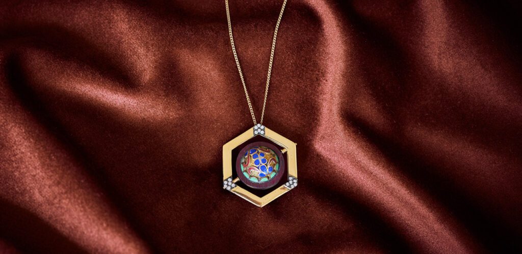 Pela primeira vez, a joalheira Ana Damous se une a colega de profissão Chris Bove para criar uma coleção. Elas apresentam a coleção “Cloisonné”, caracterizada por peças em esmalte colorido sobre ouro e metal, aplicadas com madeiras brasileiras selecionadas, como o ipê, moreira, guaribu, roxinho e muirapiranga. Turmalinas, lápis-lazúli e diamantes enfeitam as joias.