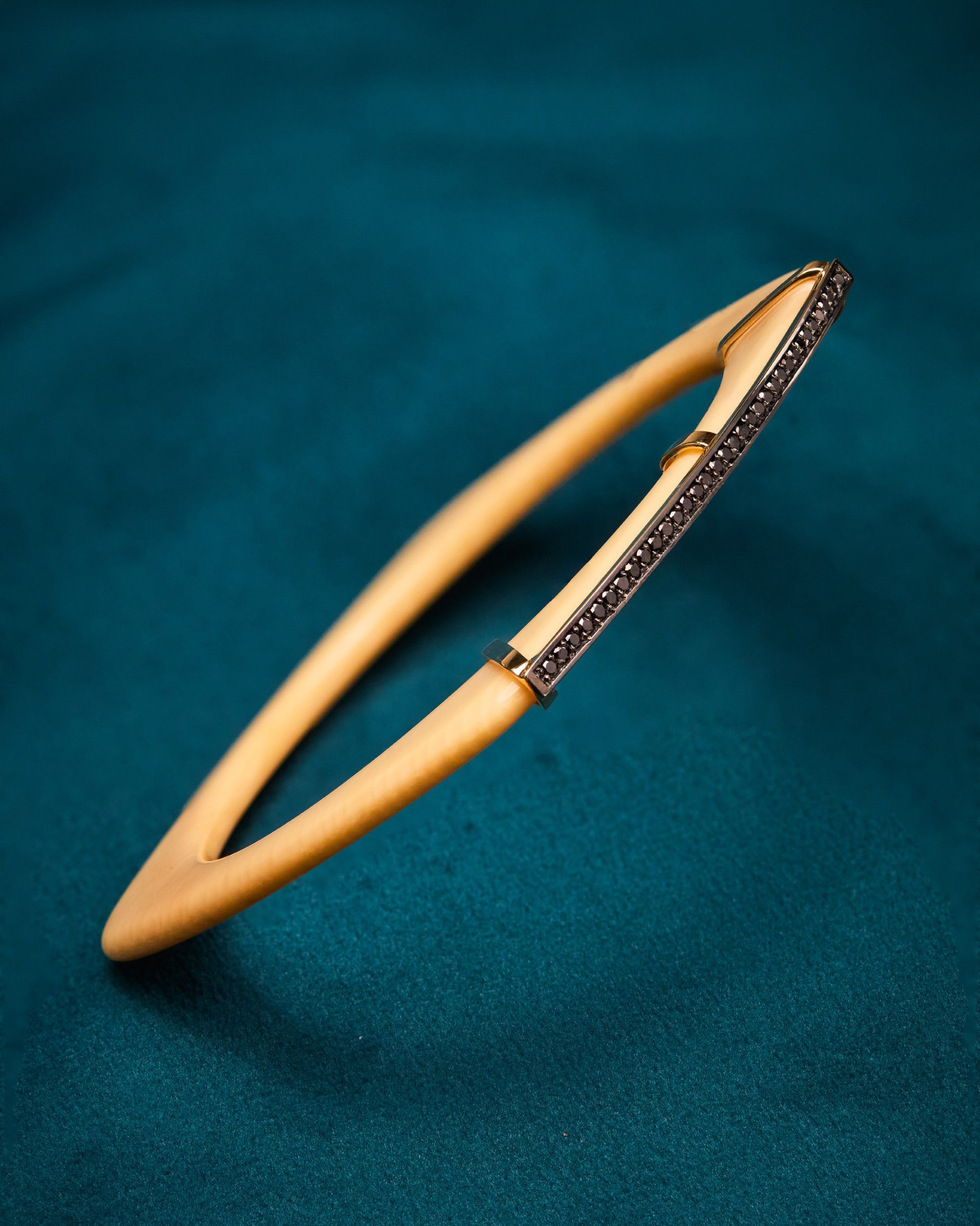 Bracelete de fragmento de Marfim do século XIX. Ouro amarelo 18k e Diamantes negros totalizando 0,51 ct.