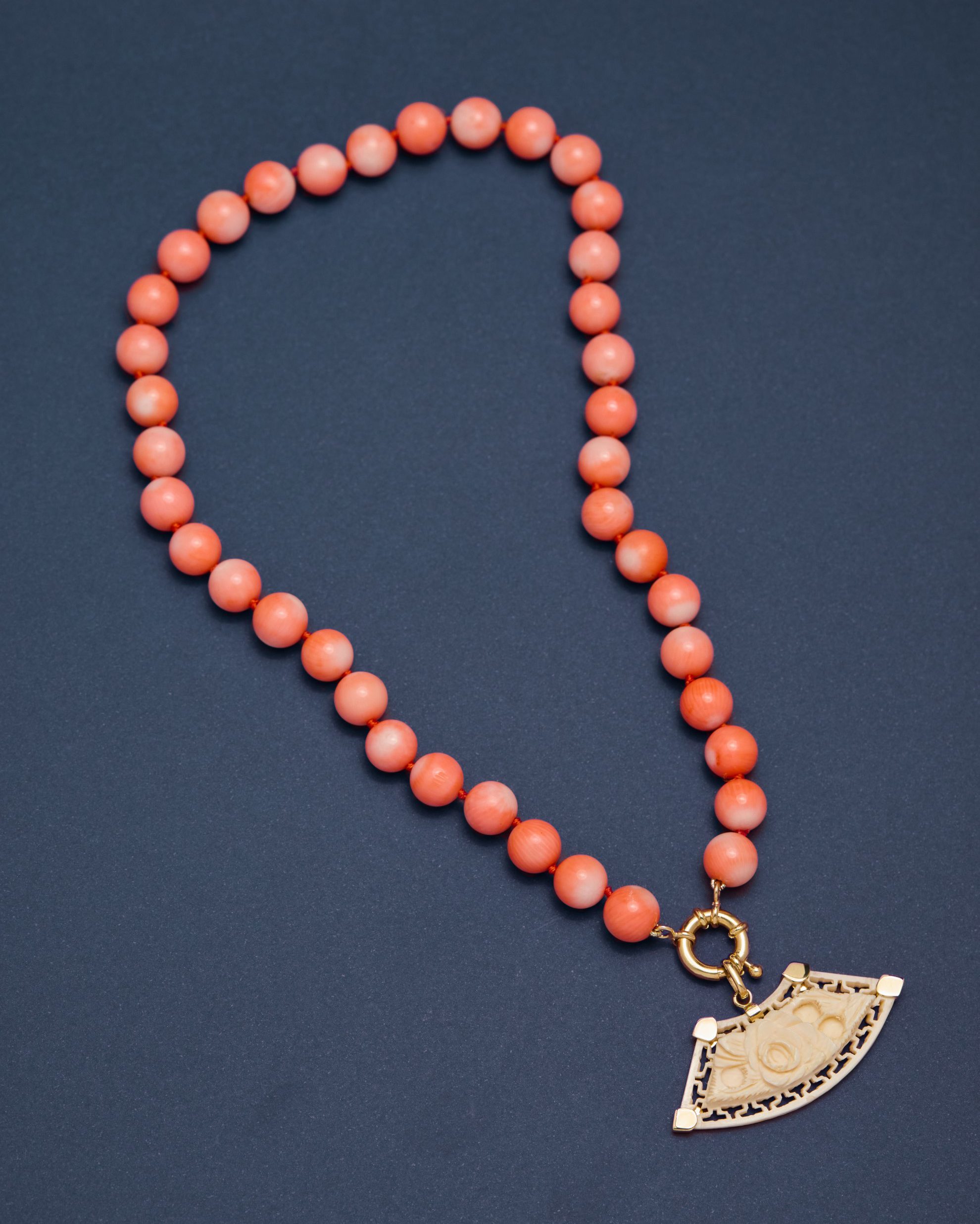 Pingente com fragmento de leque em Marfim, final do século XIX. Em Ouro amarelo 18k.